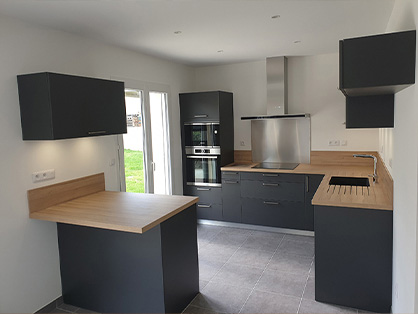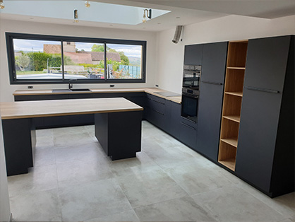 De la conception des plans jusqu’à l’installation de votre cuisine équipée, nous assurons la fourniture des matériaux, la fabrication sur mesure du mobilier, la pose du plan de travail et la vente d'ustensiles et d'appareils électroménagers. Avant, pendant et après les travaux de chantier, nous restons à votre écoute pour toutes propositions de modification.